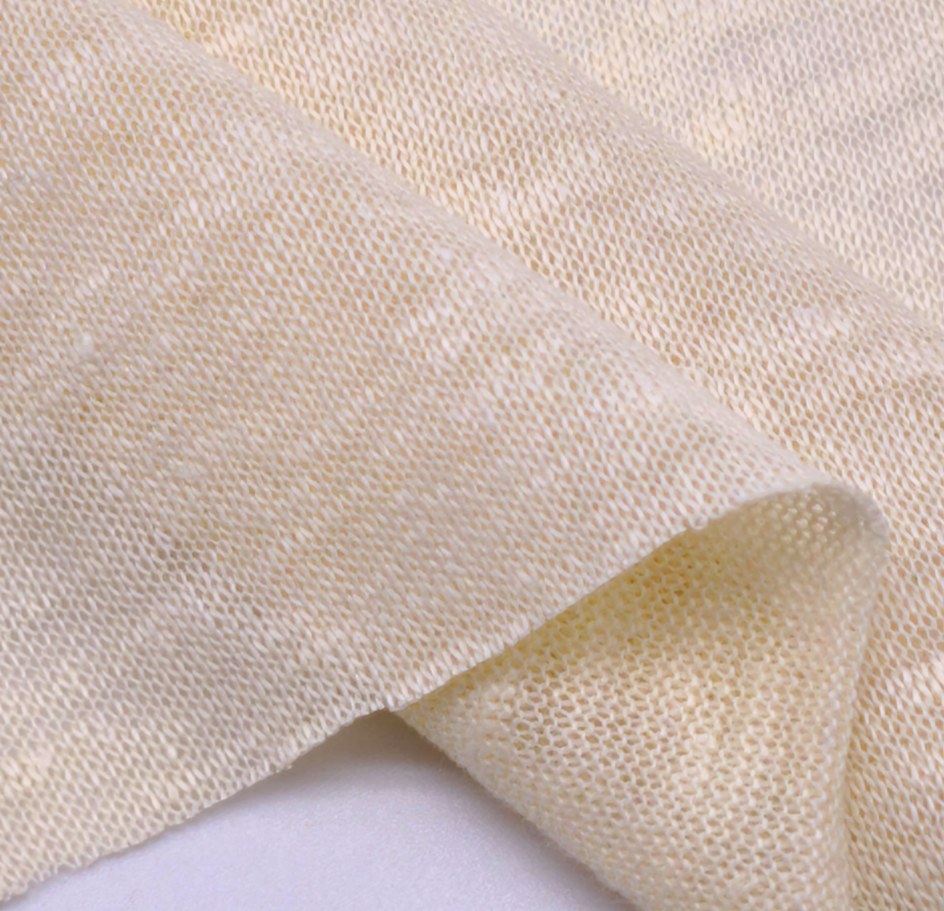 Malha fresca, fina, com transparência