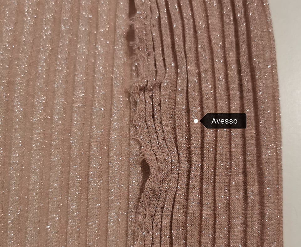 Malha rib/canelada 5x4 com lurex, com elasticidade e alguma transparência