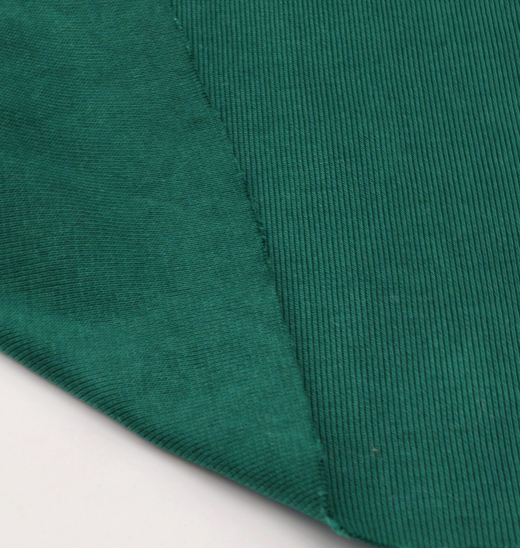 Malha canelada com elasticidade e flexibilidade, cor opaca, sem brilho, bom toque, suave, peso médio