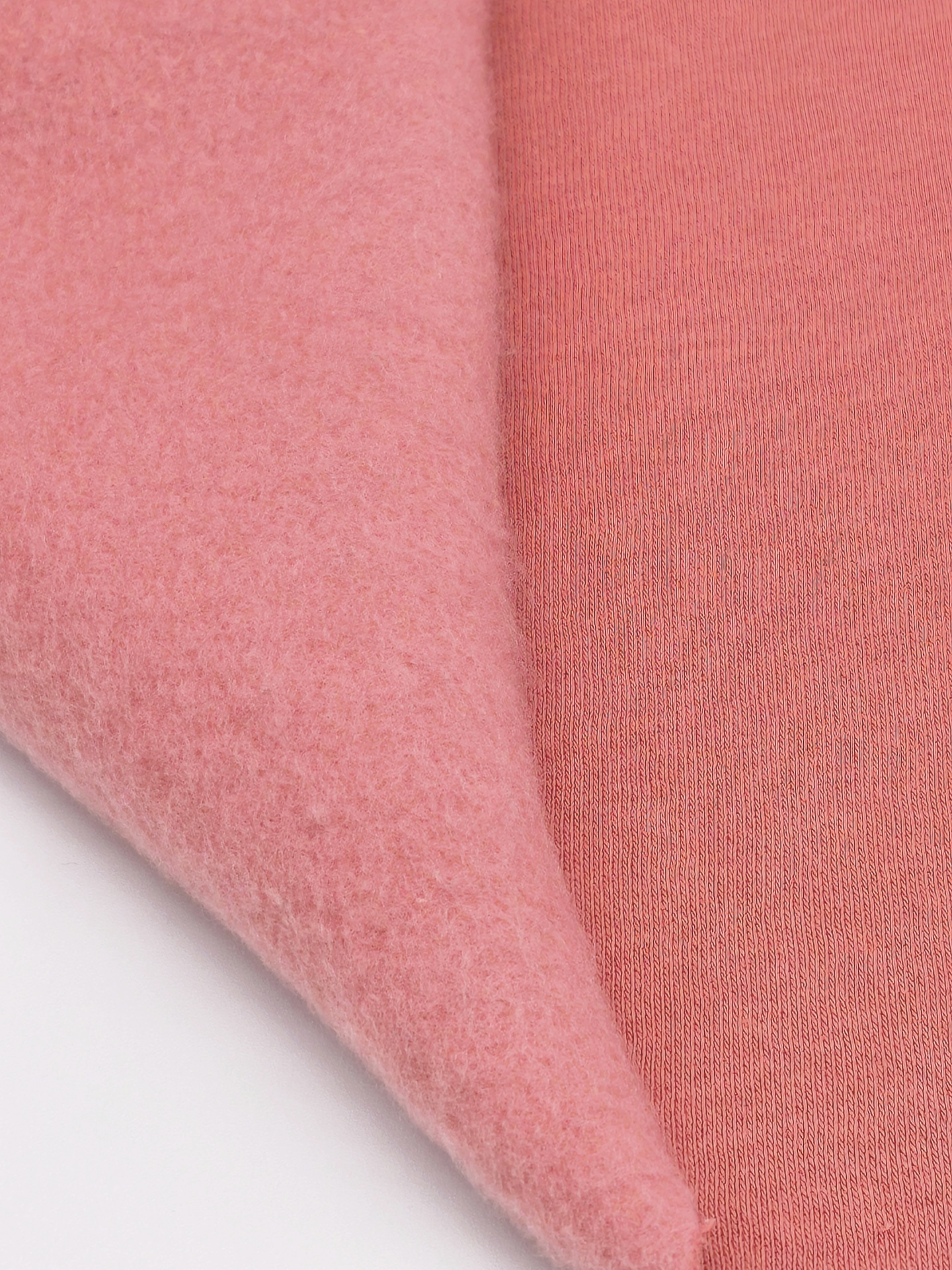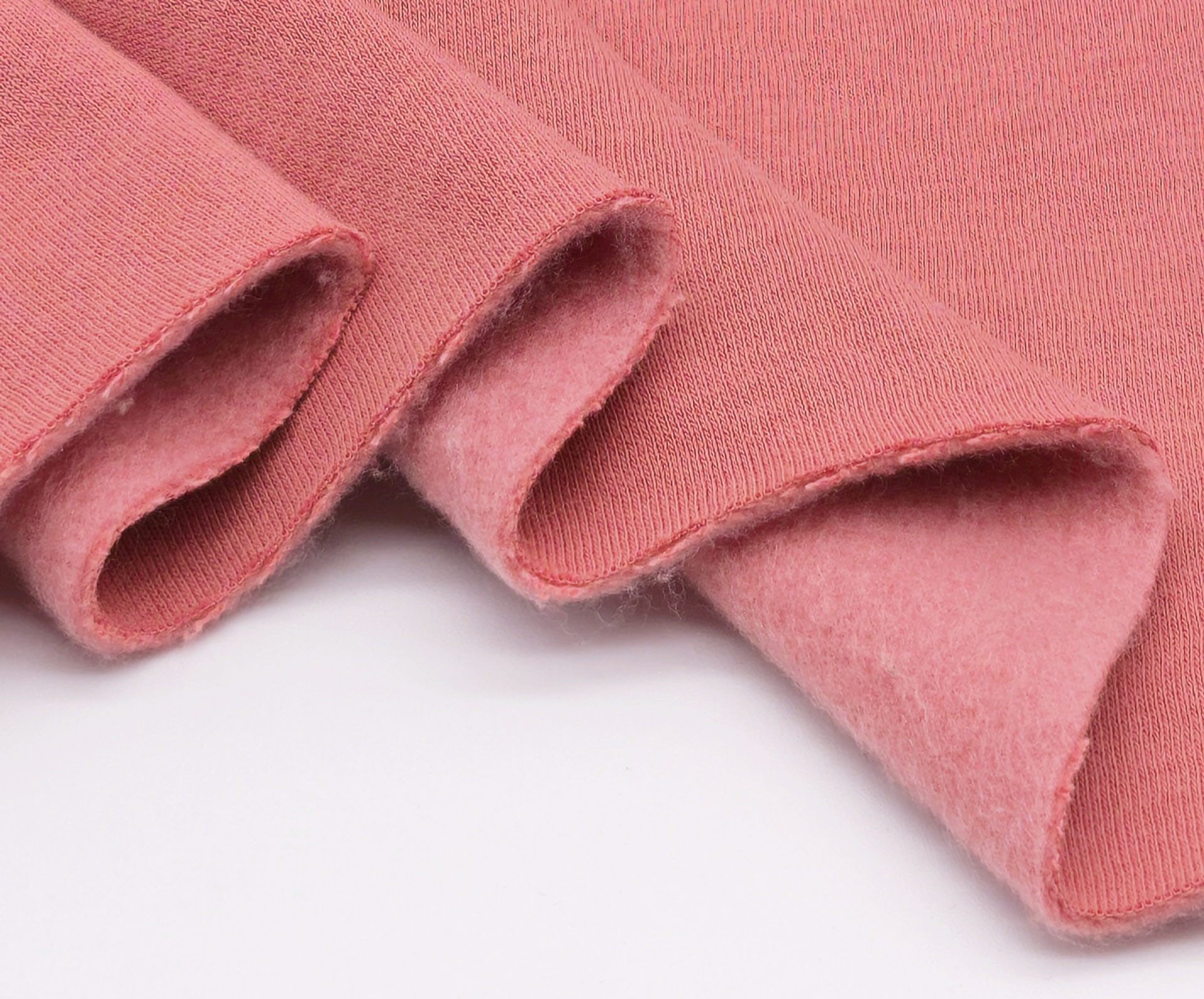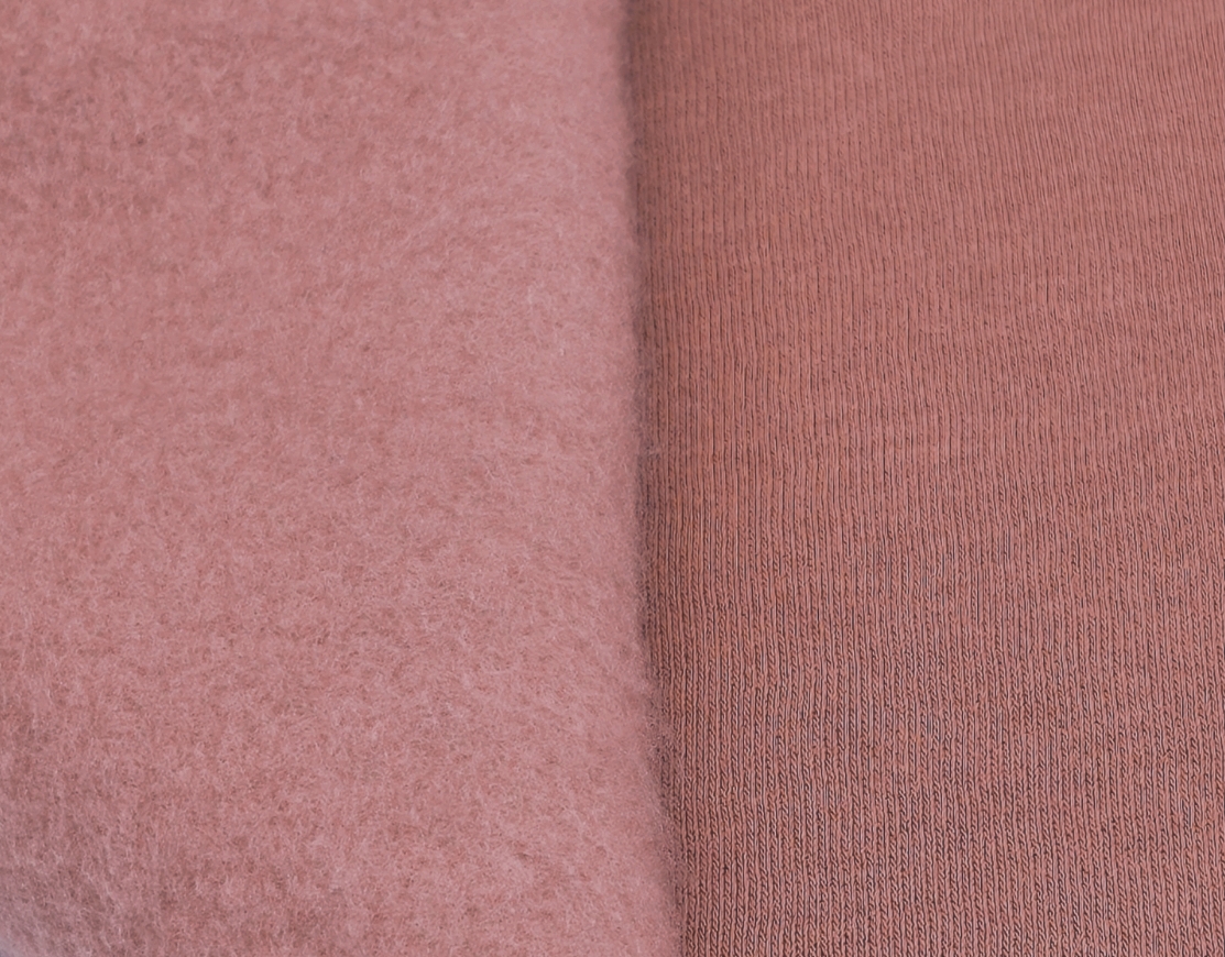 Malha quentinha, maleável, macia, bom caimento, cor opaca, sem brilho, sem elasticidade