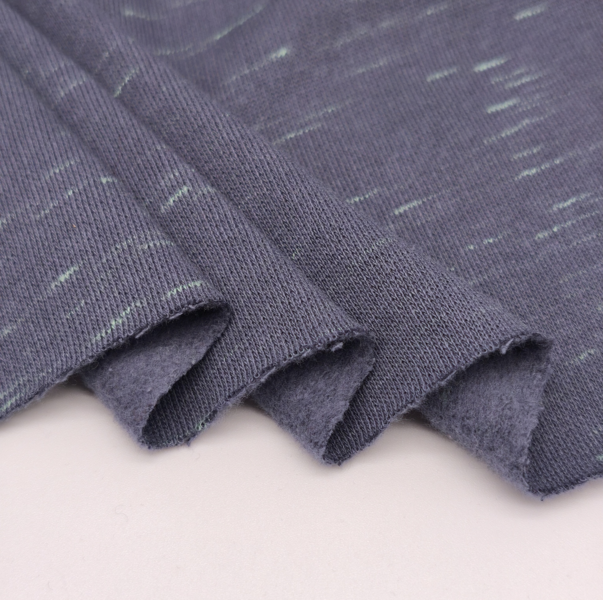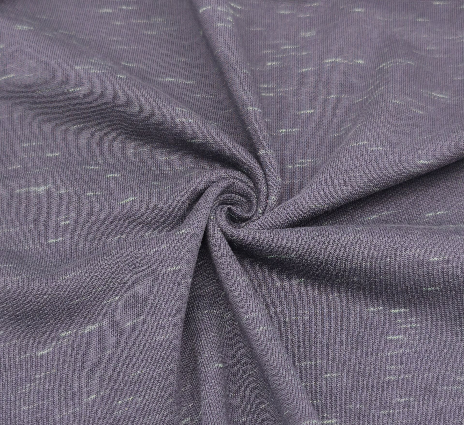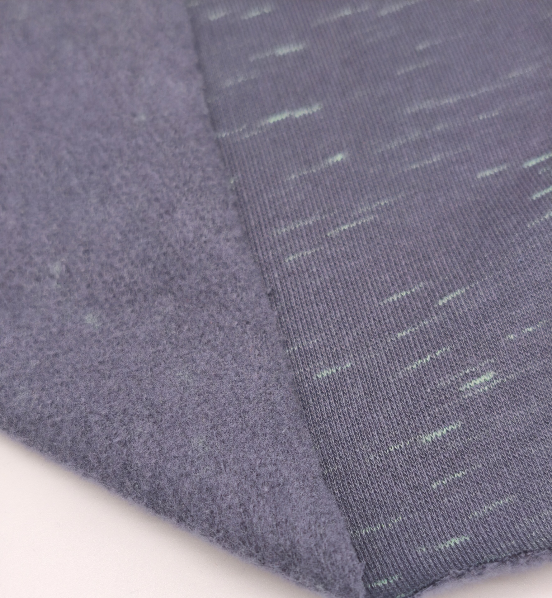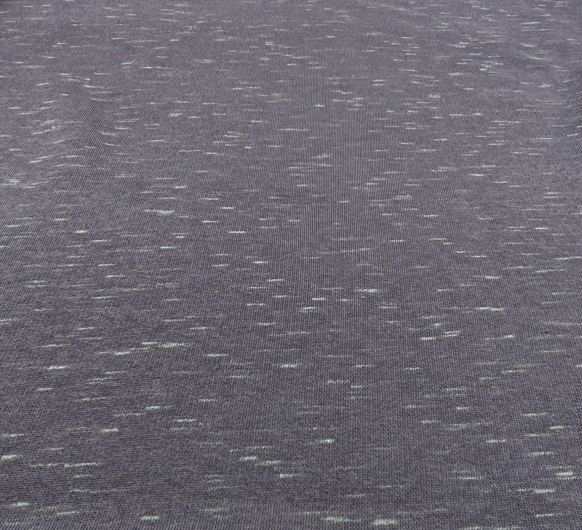 Malha de tom cinza com pontos mescla verdes, quentinha, macia, maleável, cores opacas, sem brilho, sem elasticidade