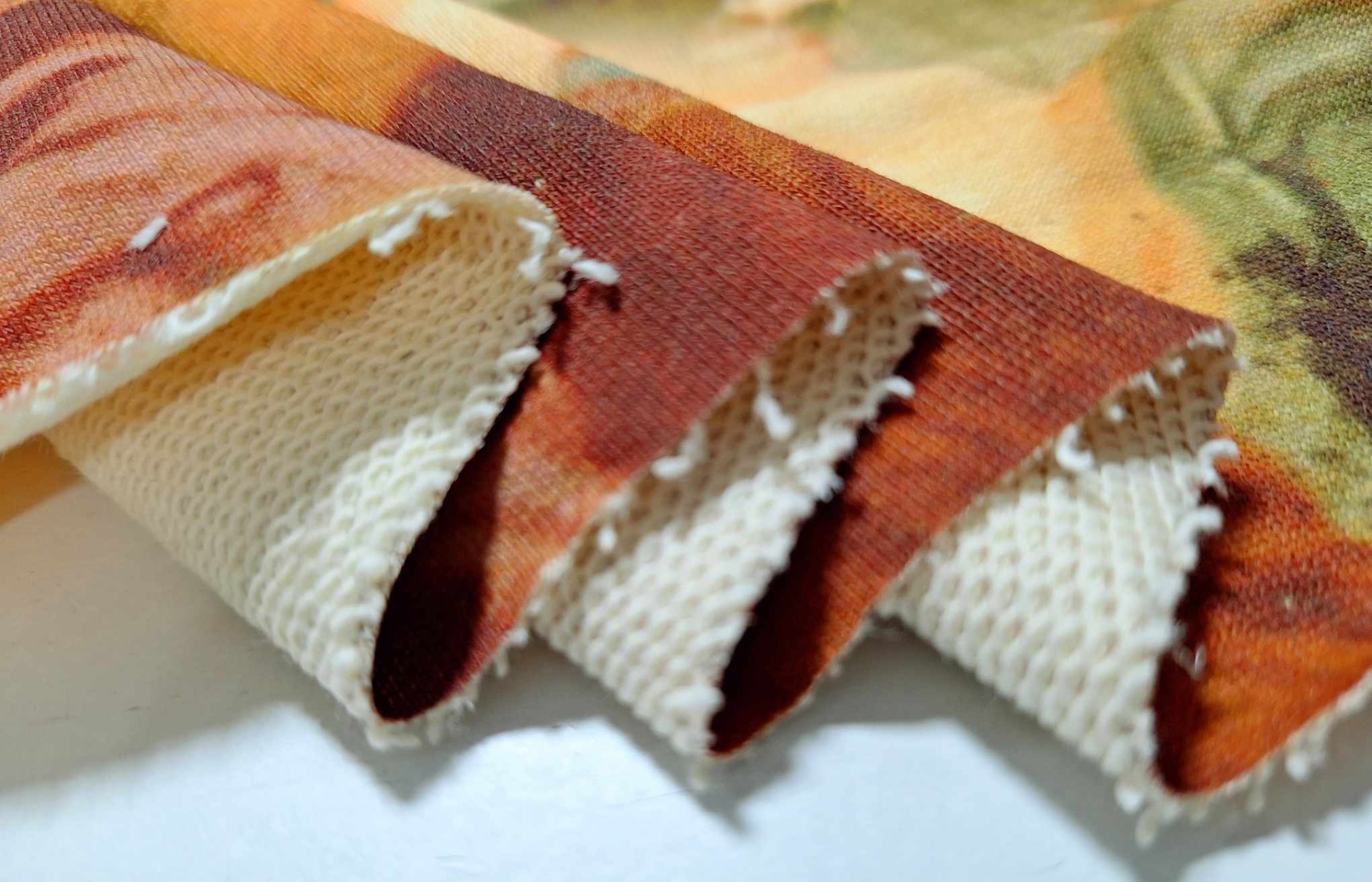 Malha sem carda, bom caimento, toque suave, maleável