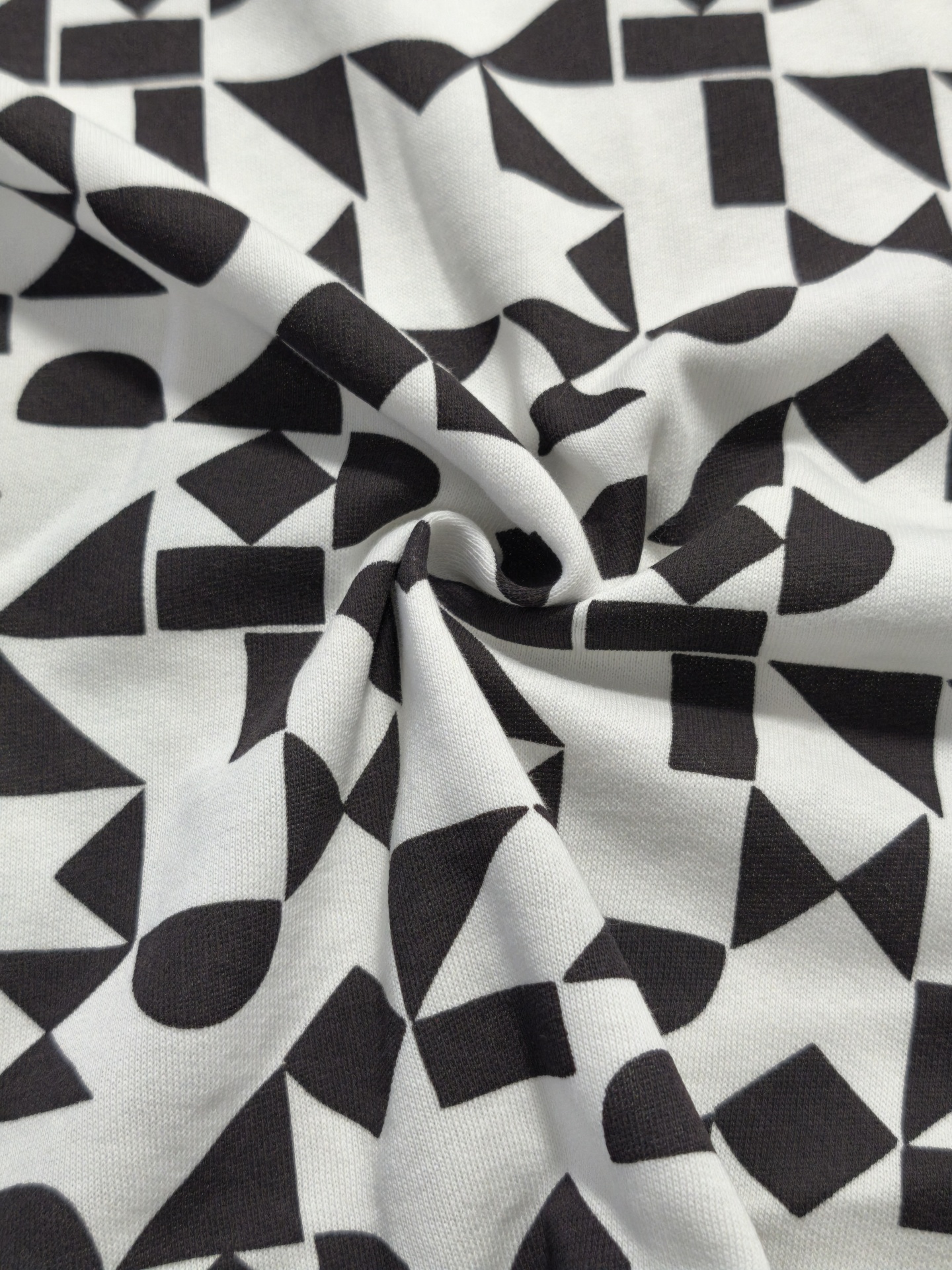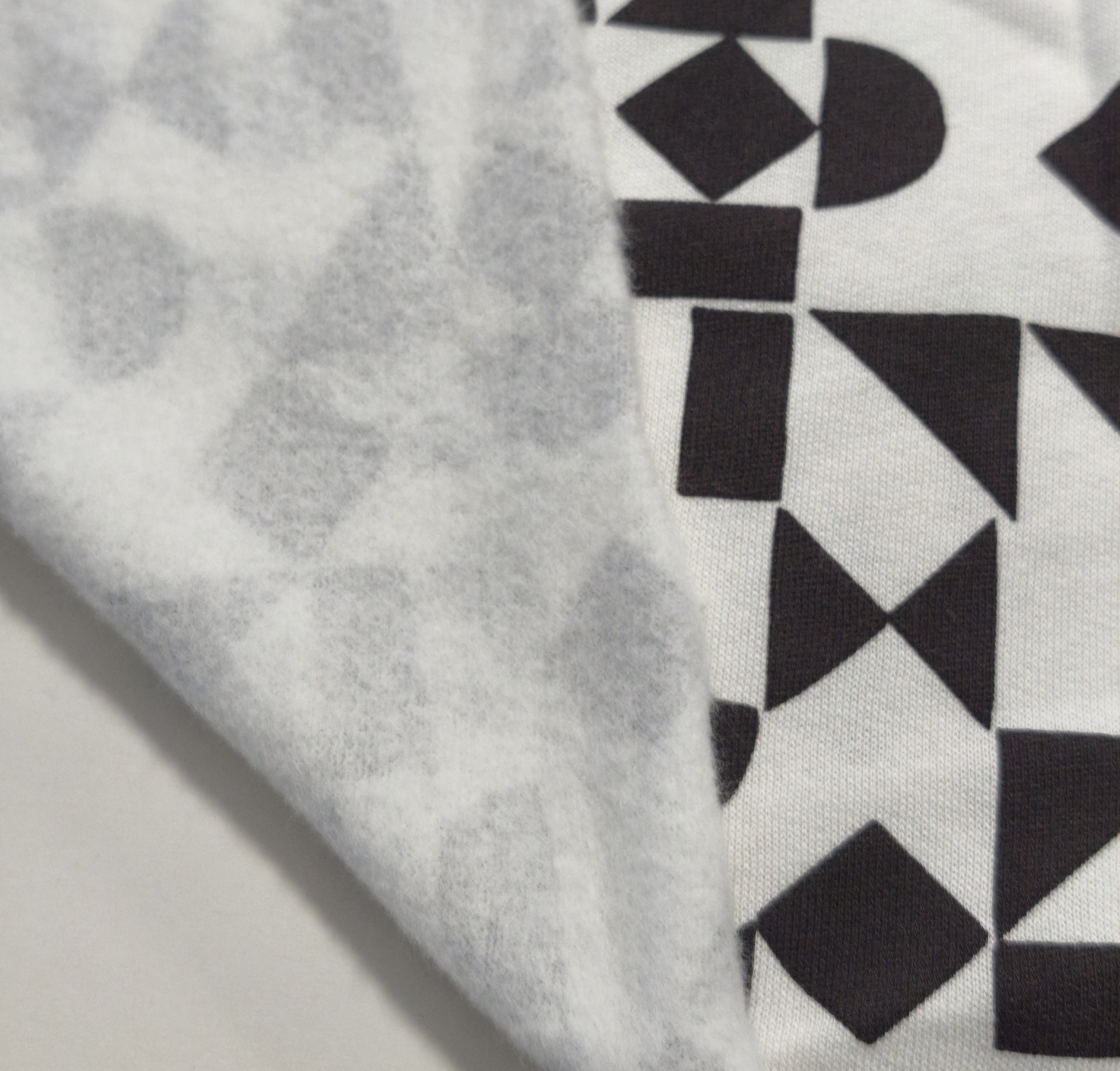 Malha no tom branco e preto,quentinha, macia, maleável, cores opacas, sem brilho, sem elasticidade