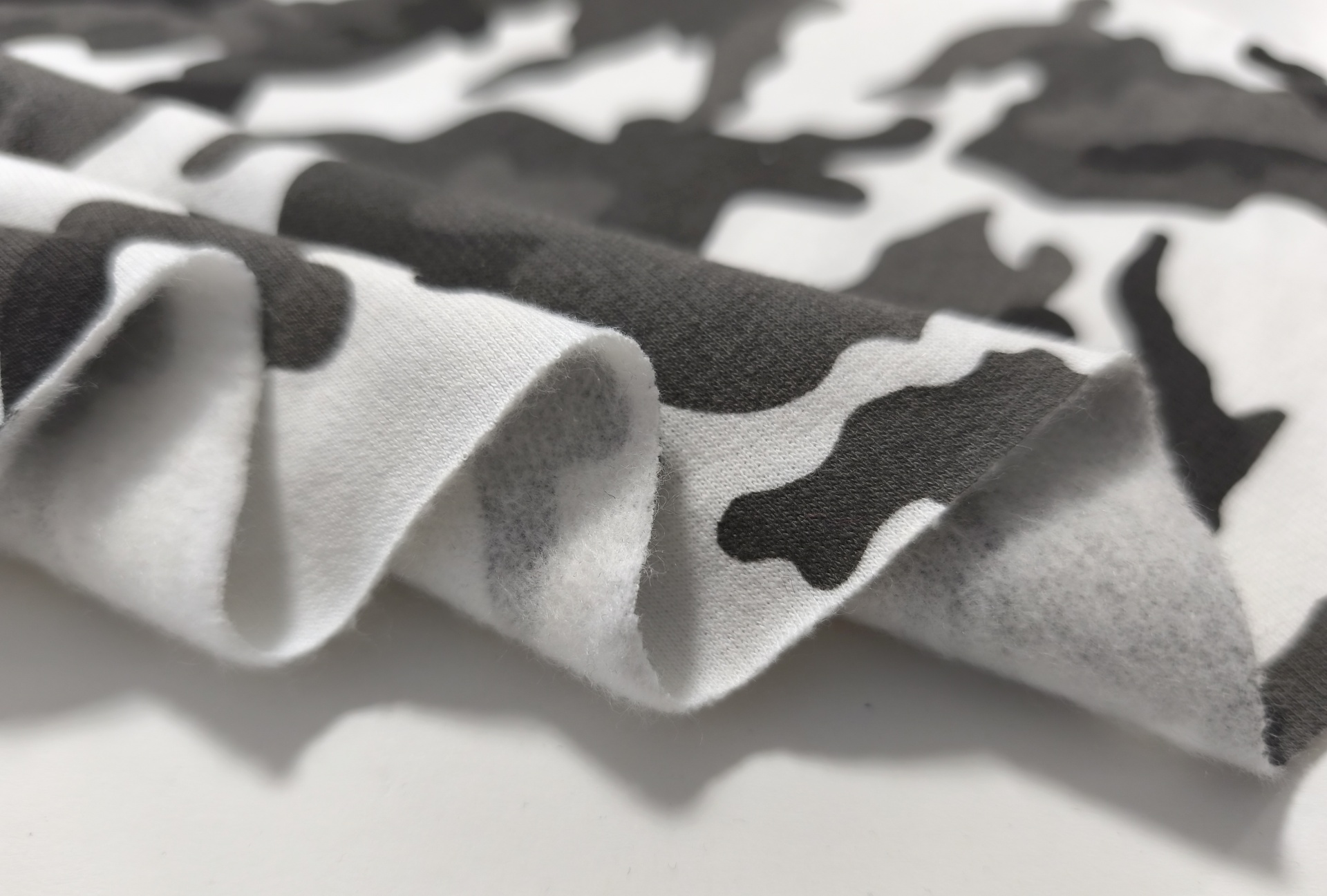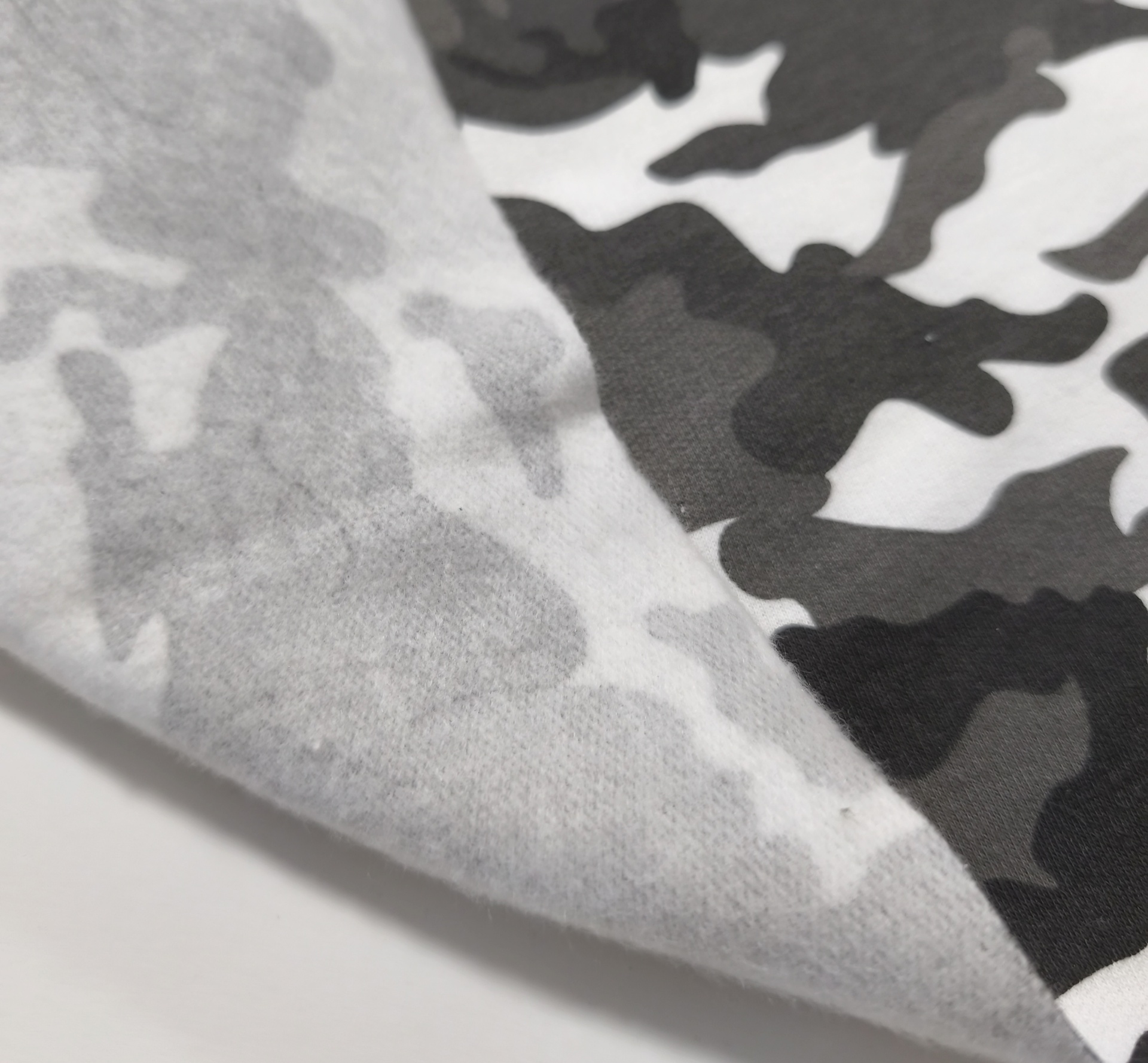 Malha quentinha, maleável, macia, cores opacas, sem brilho, sem elasticidade