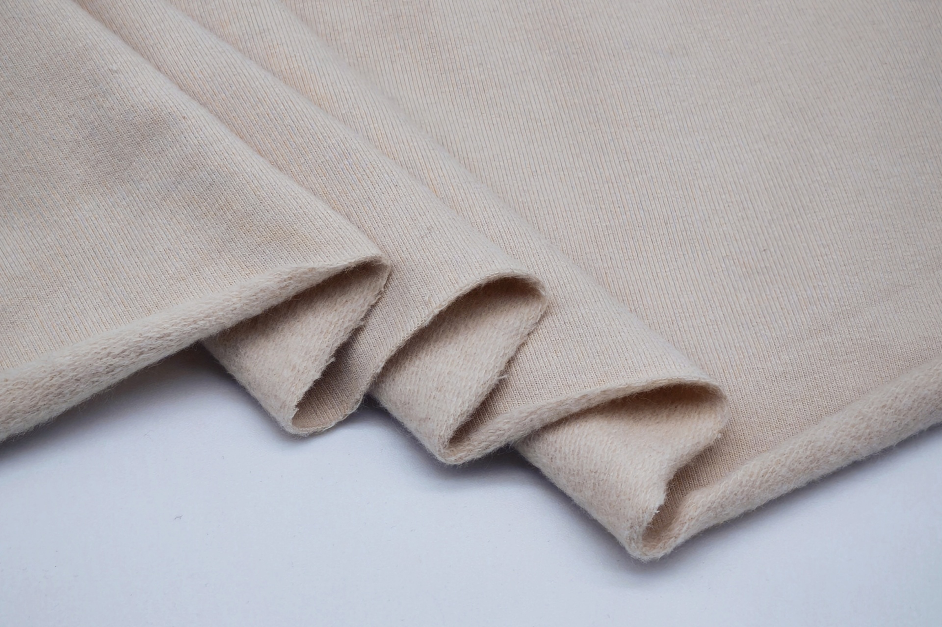 Malha macia, maleável, boa elasticidade, cor opaca, sem brilho
