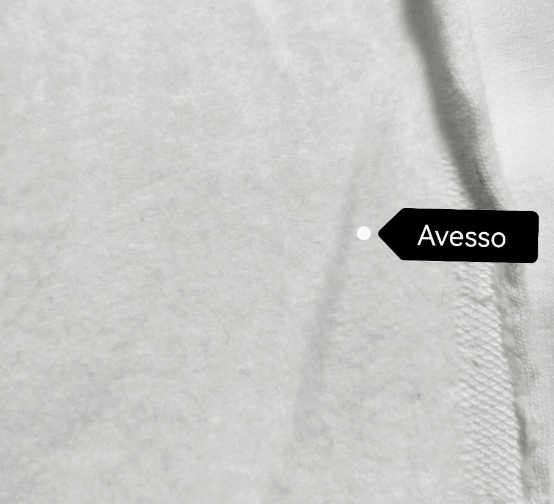 Malha de tom branco morno, bastante confortável, quentinha, macia e maleável