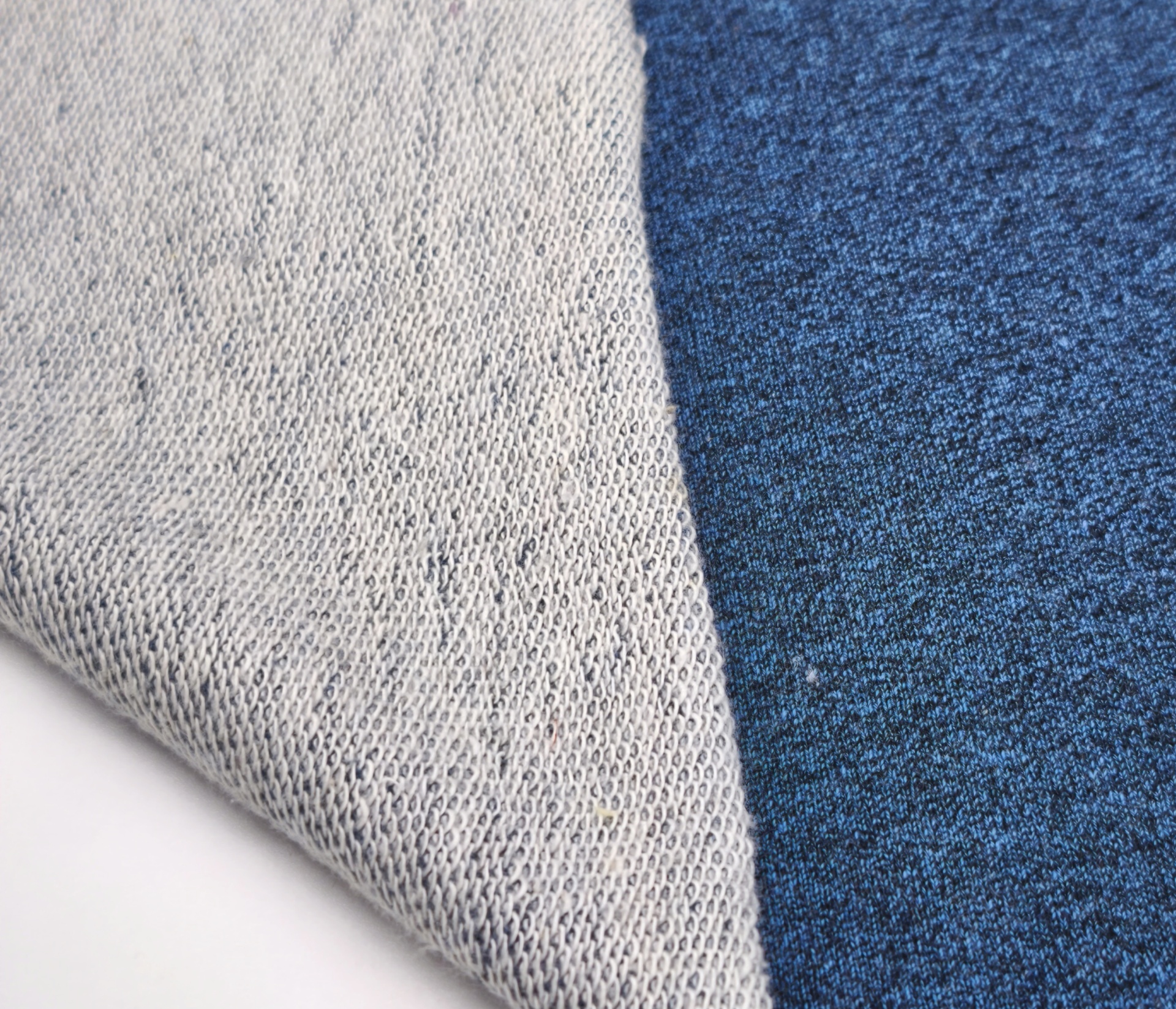 Malha felpa em ponto italiano, com boa elasticidade, toque suave e fresco