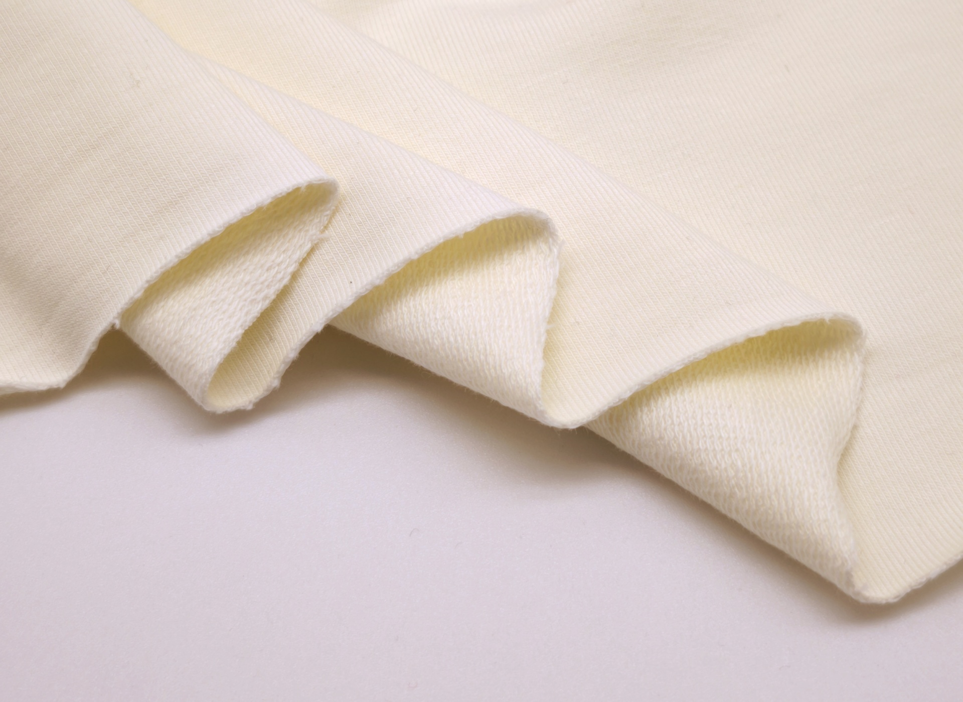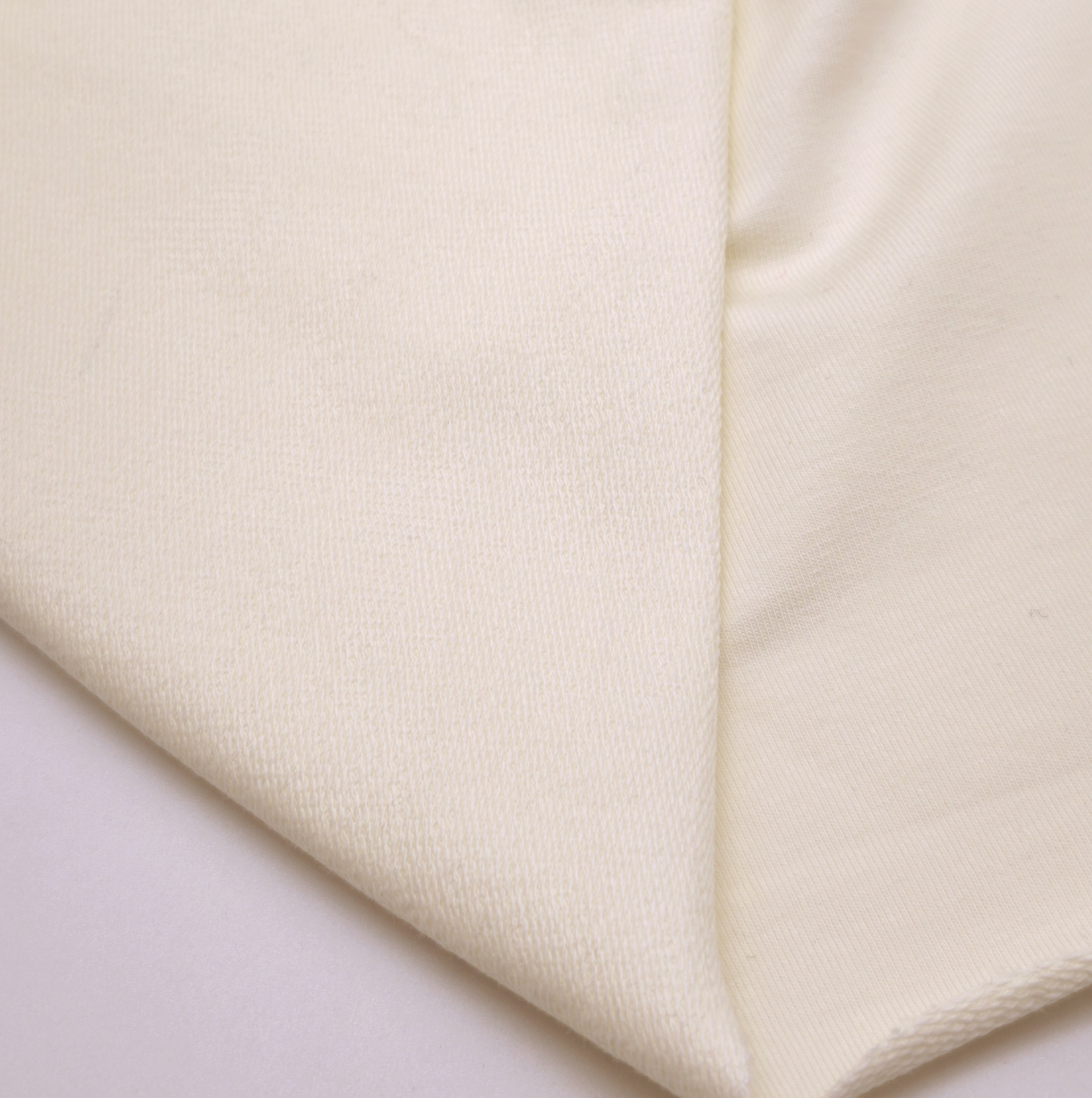 Malha felpa em ponto italiano, com boa elasticidade, toque suave e fresco
