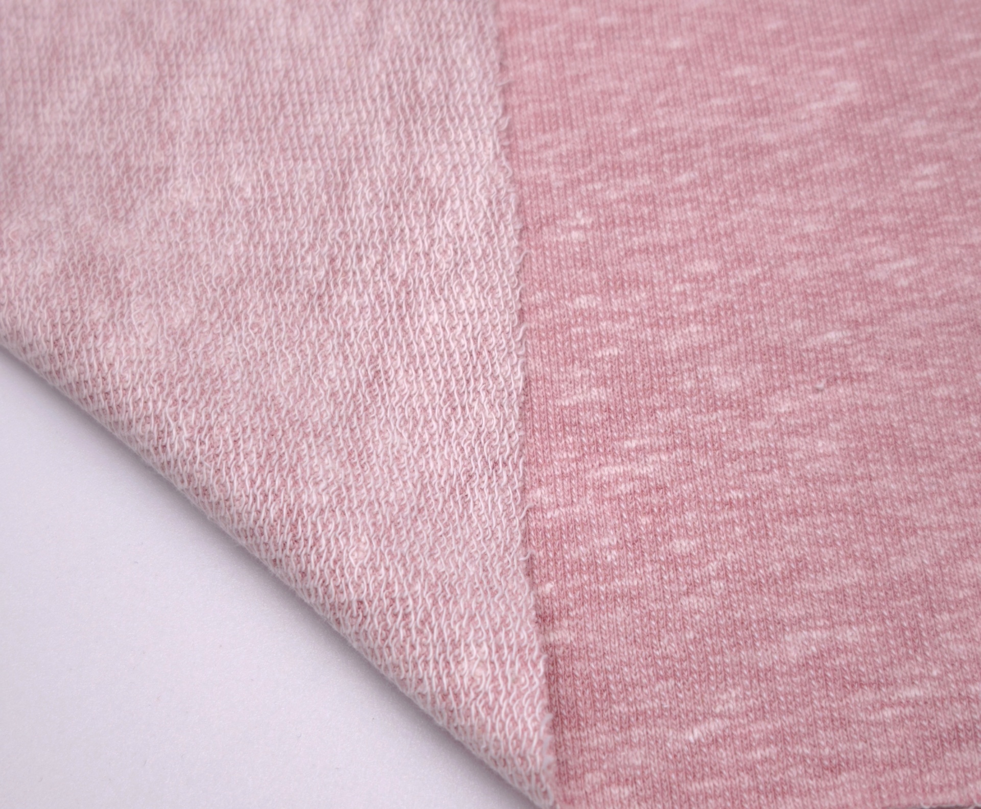 Malha felpa em ponto italiano, com boa elasticidade, toque suave e fresco