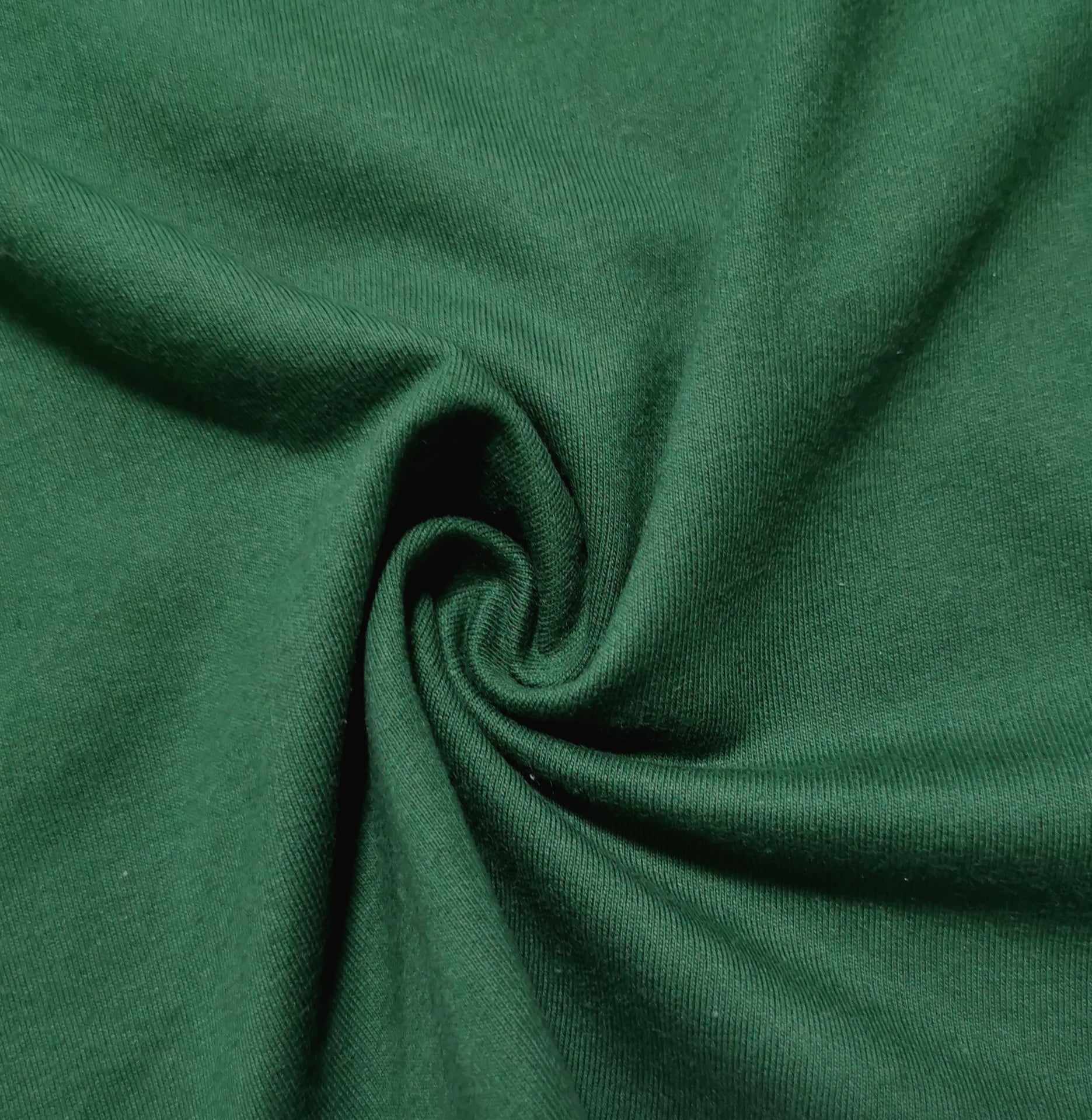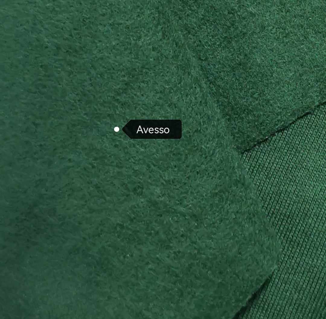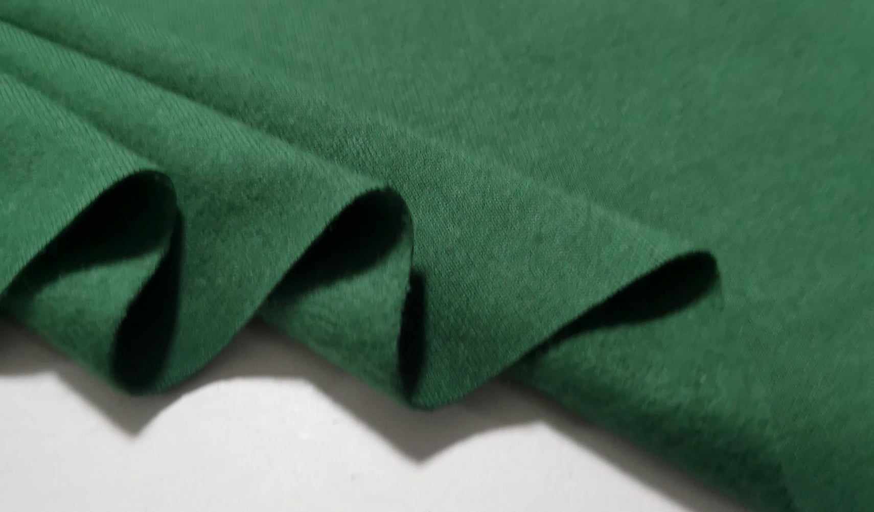 Malha de tom verde garrafa, macia, muito confortável, bom caimento