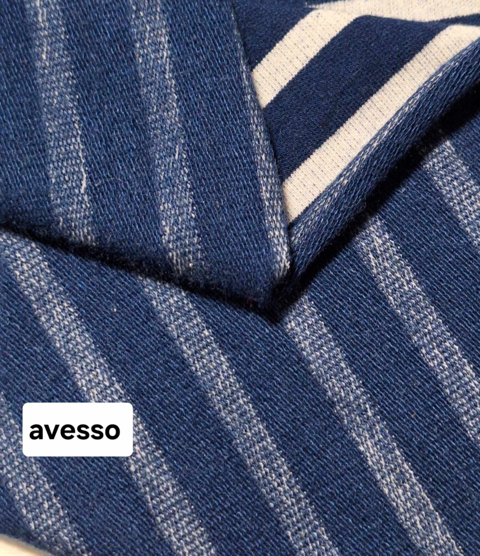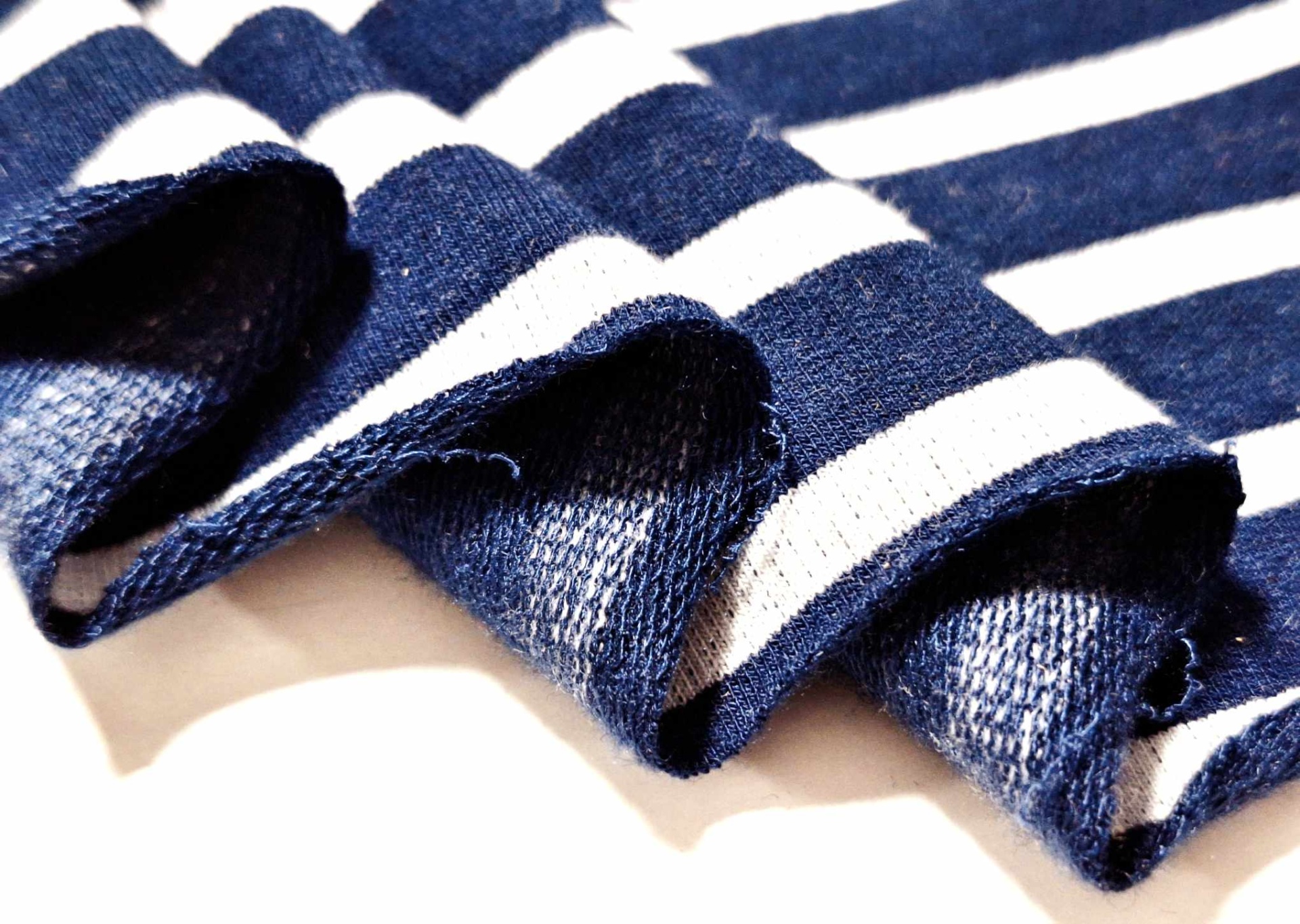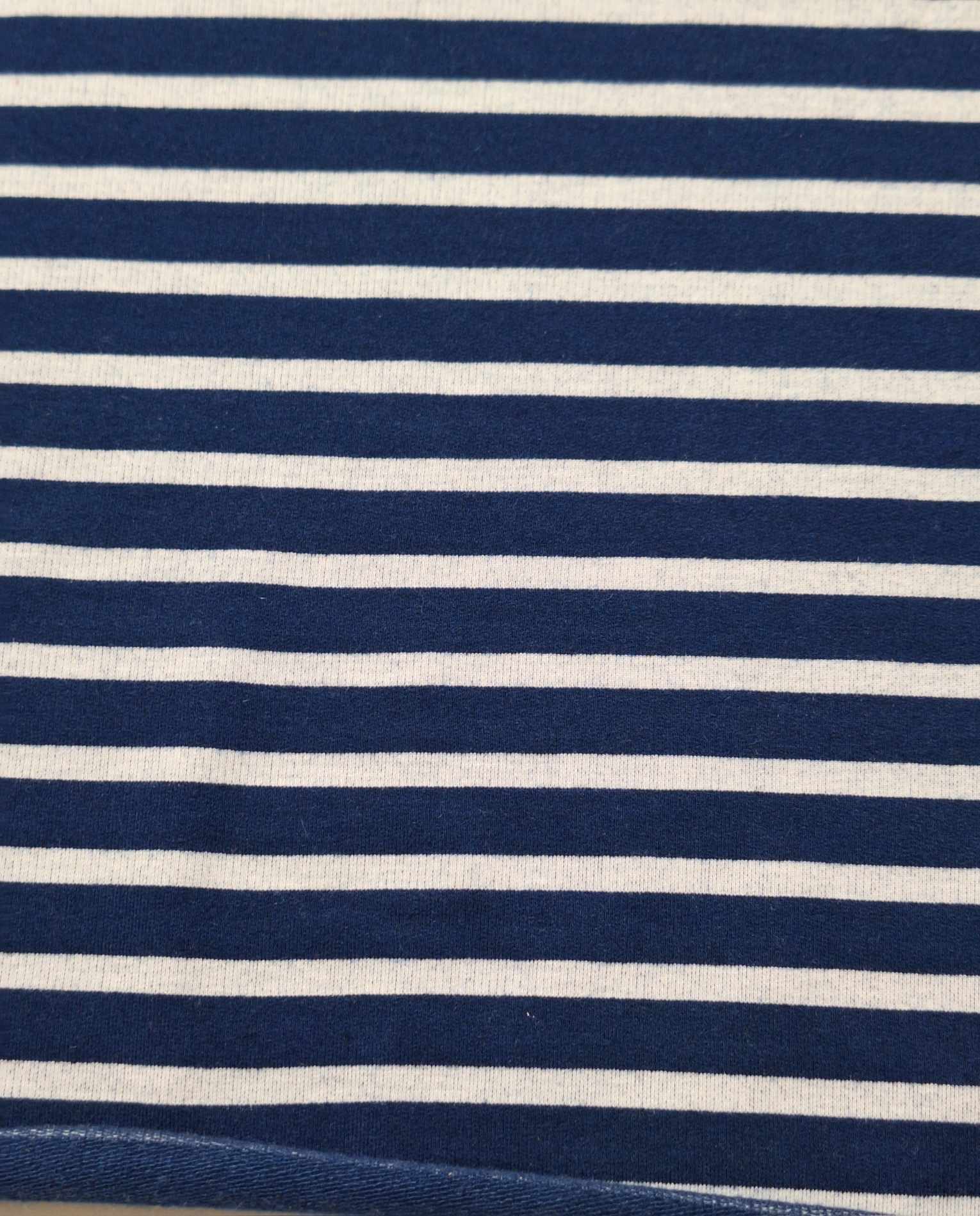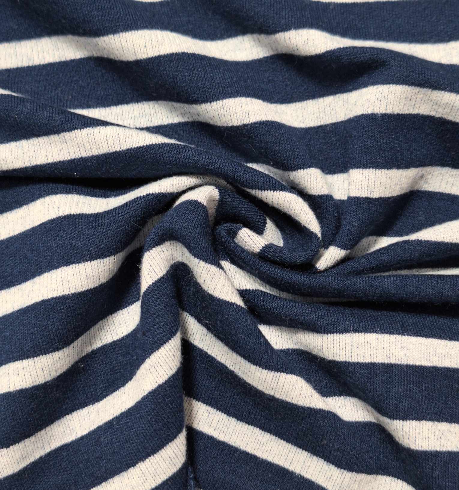 Malha fresca,boa elasticidade, tom marinho e branco,com listas na horizontal