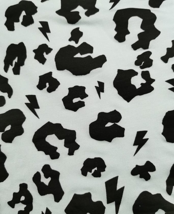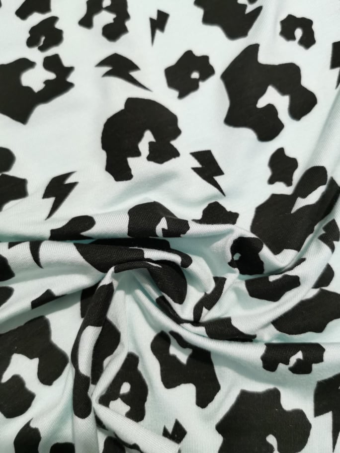 Malha com tom base verde água e estampado em preto