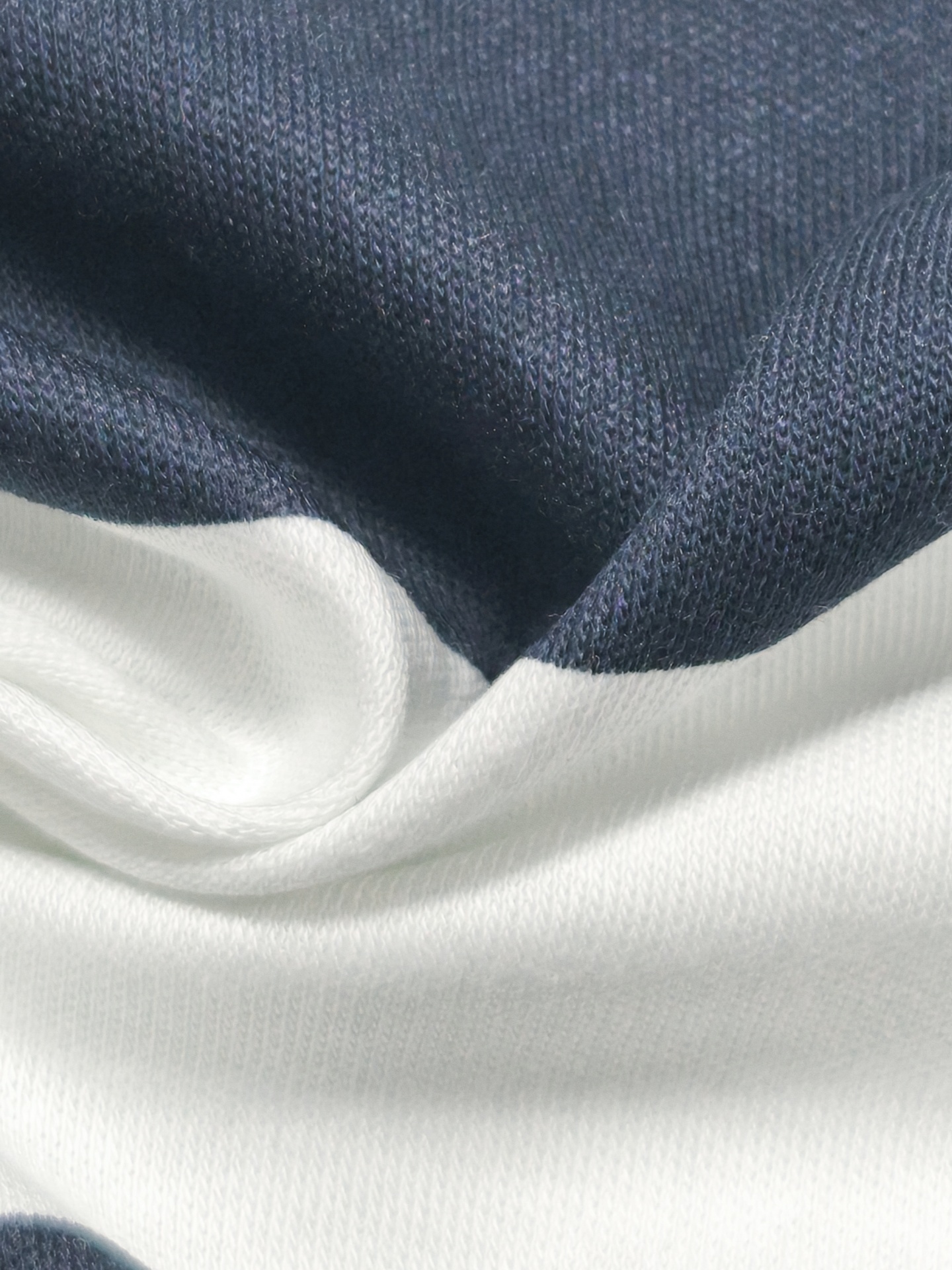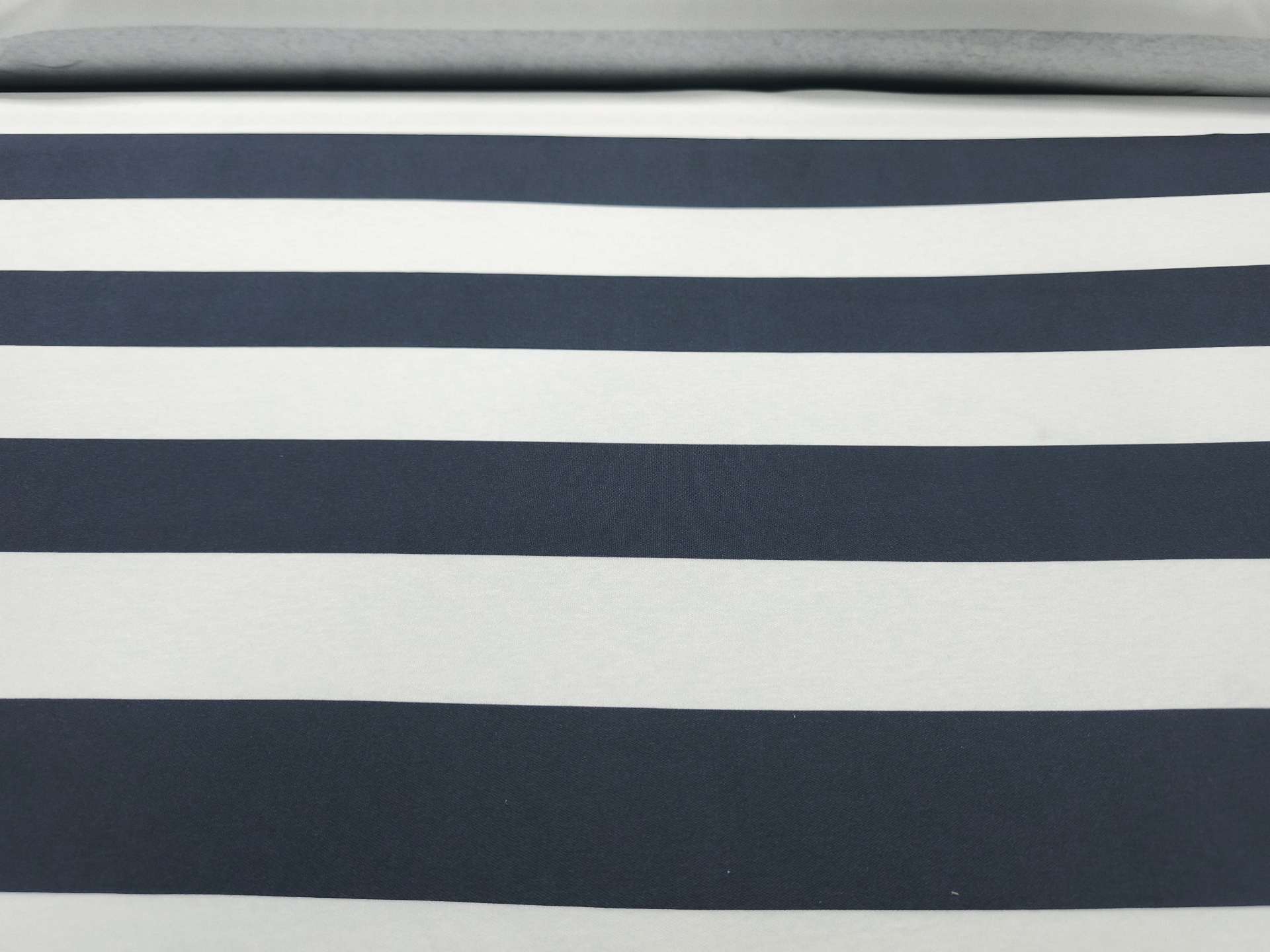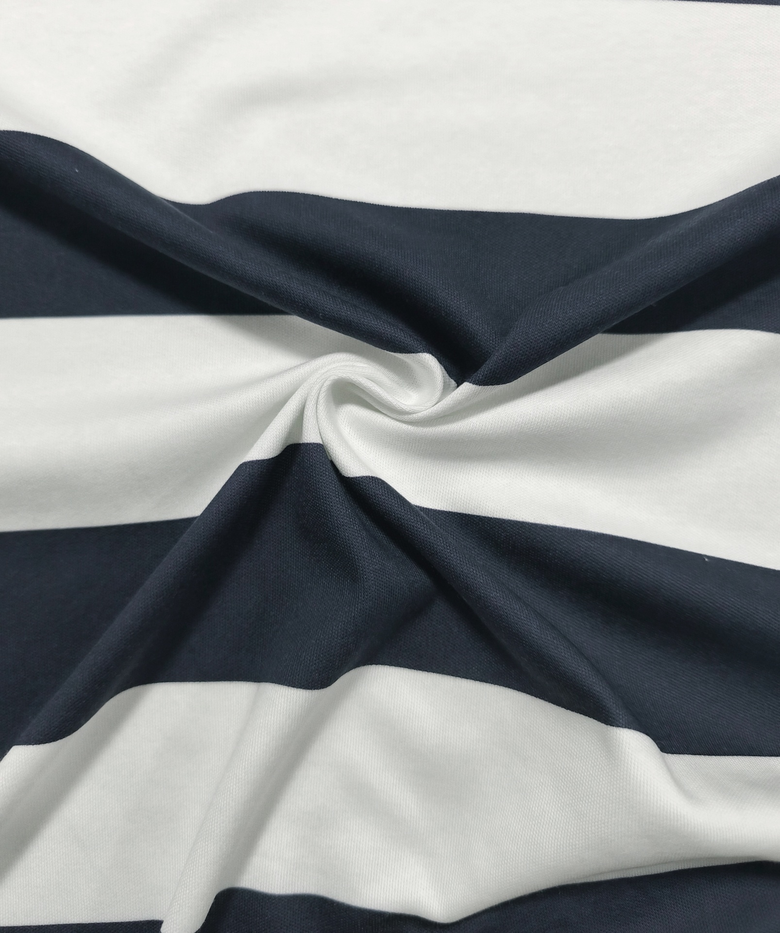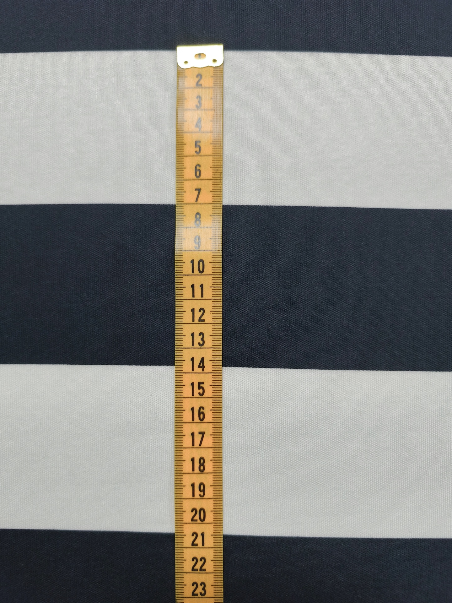 Malha de listras na horizontal com 6.50cm de espessura nos tons azul escuro e branco