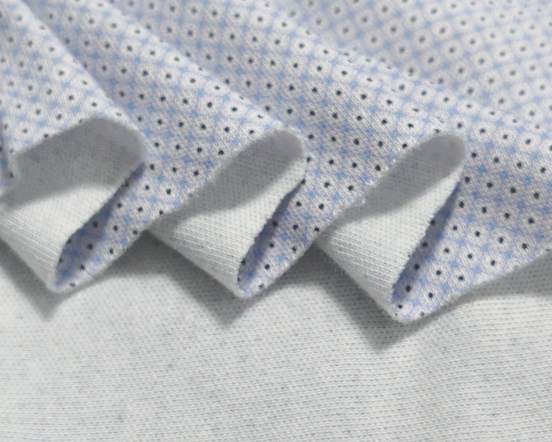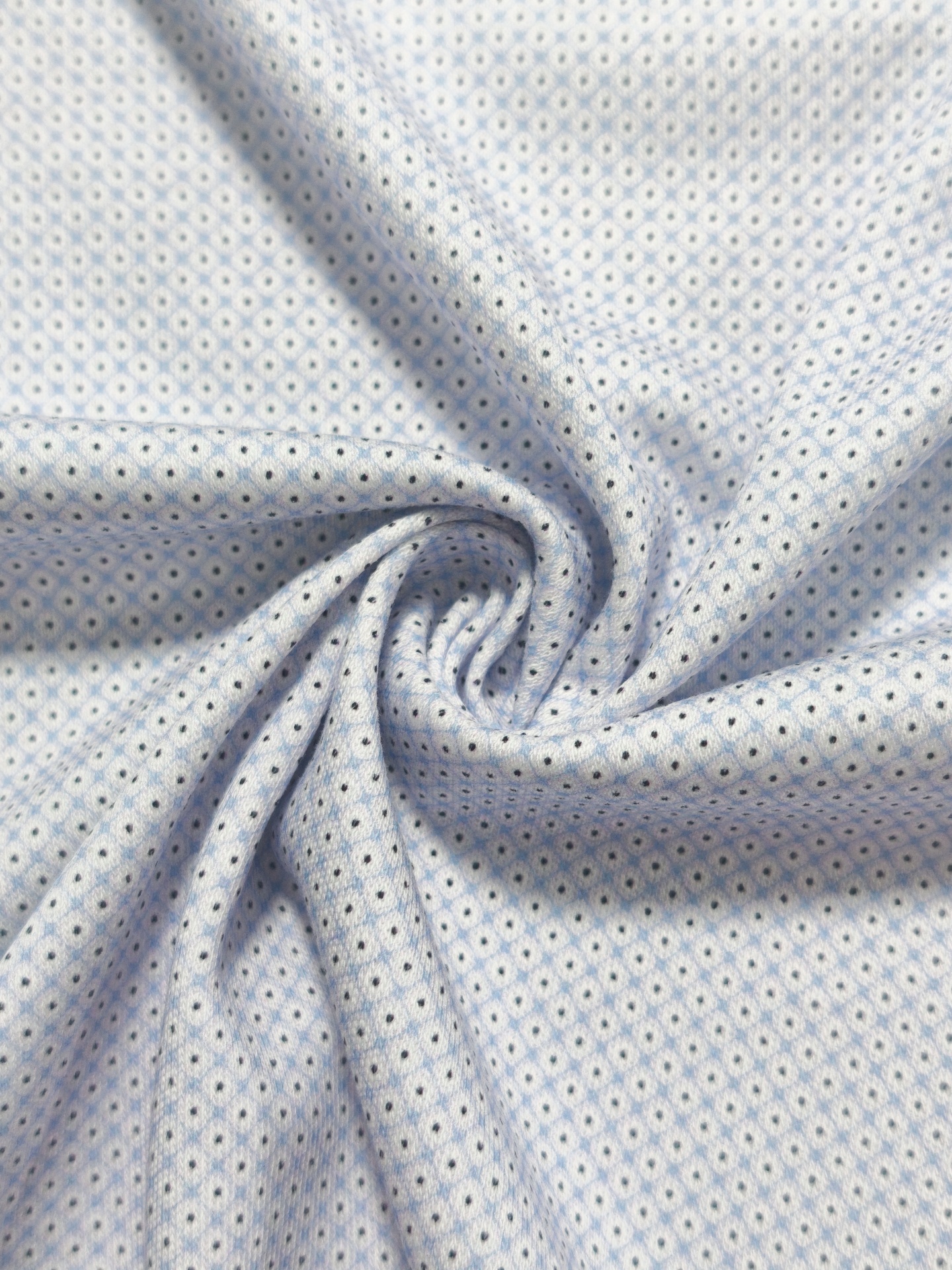 Fundo em tom branco com padrão de pequenos losangos em tom azul claro e pequenos pontos escuros