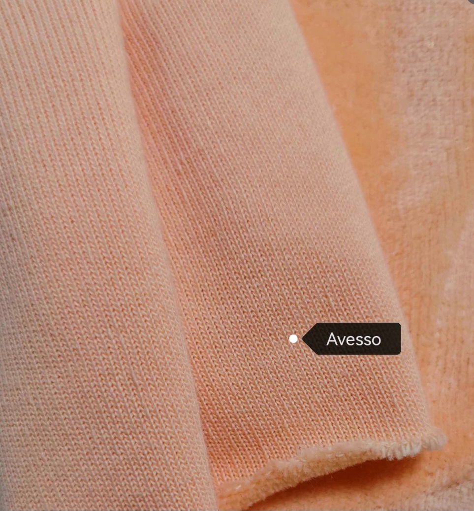 Malha de toque aveludado, muito confortável, macia, boa elasticidade e caimento