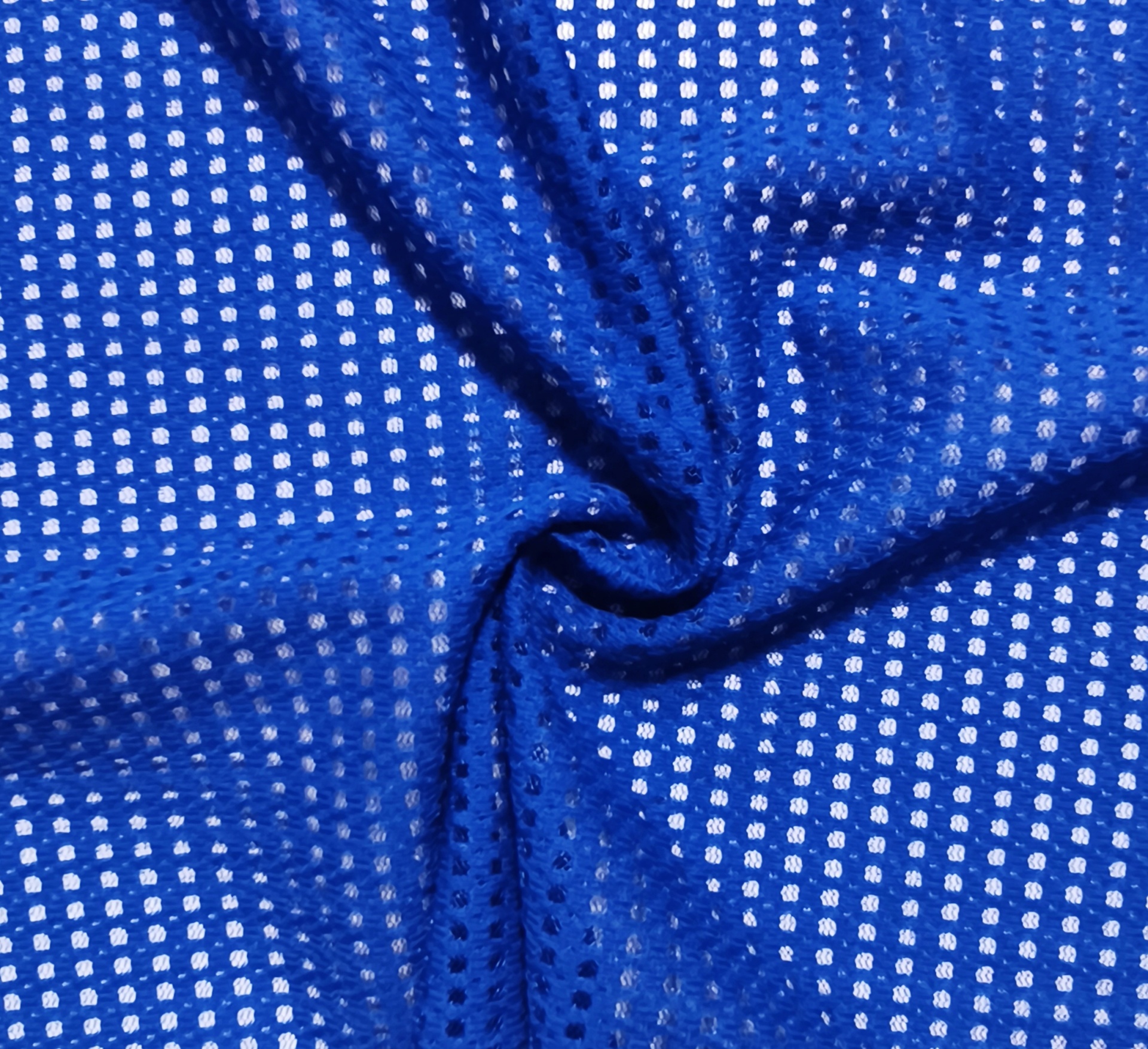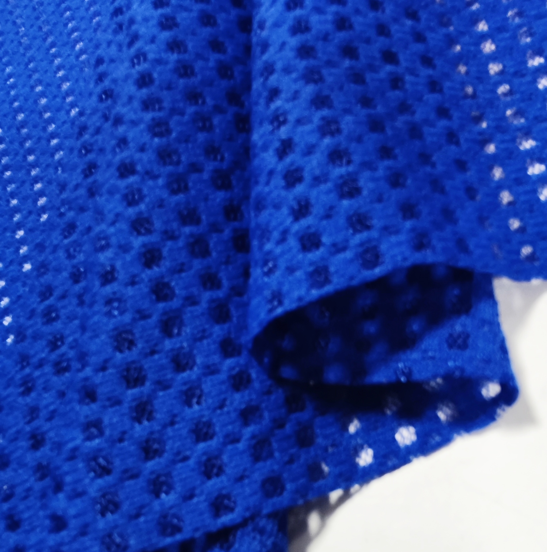 Este tecido/malha em tom azulão, com elasticidade, devido á sua rebustez e leveza permite ser usada para diversos fins, é uma malha semitransparente, elástica, flexível tornando um tecido adequado vestuário esportivo, podendo também ser usada para forra de vestuário de desporto ou banho