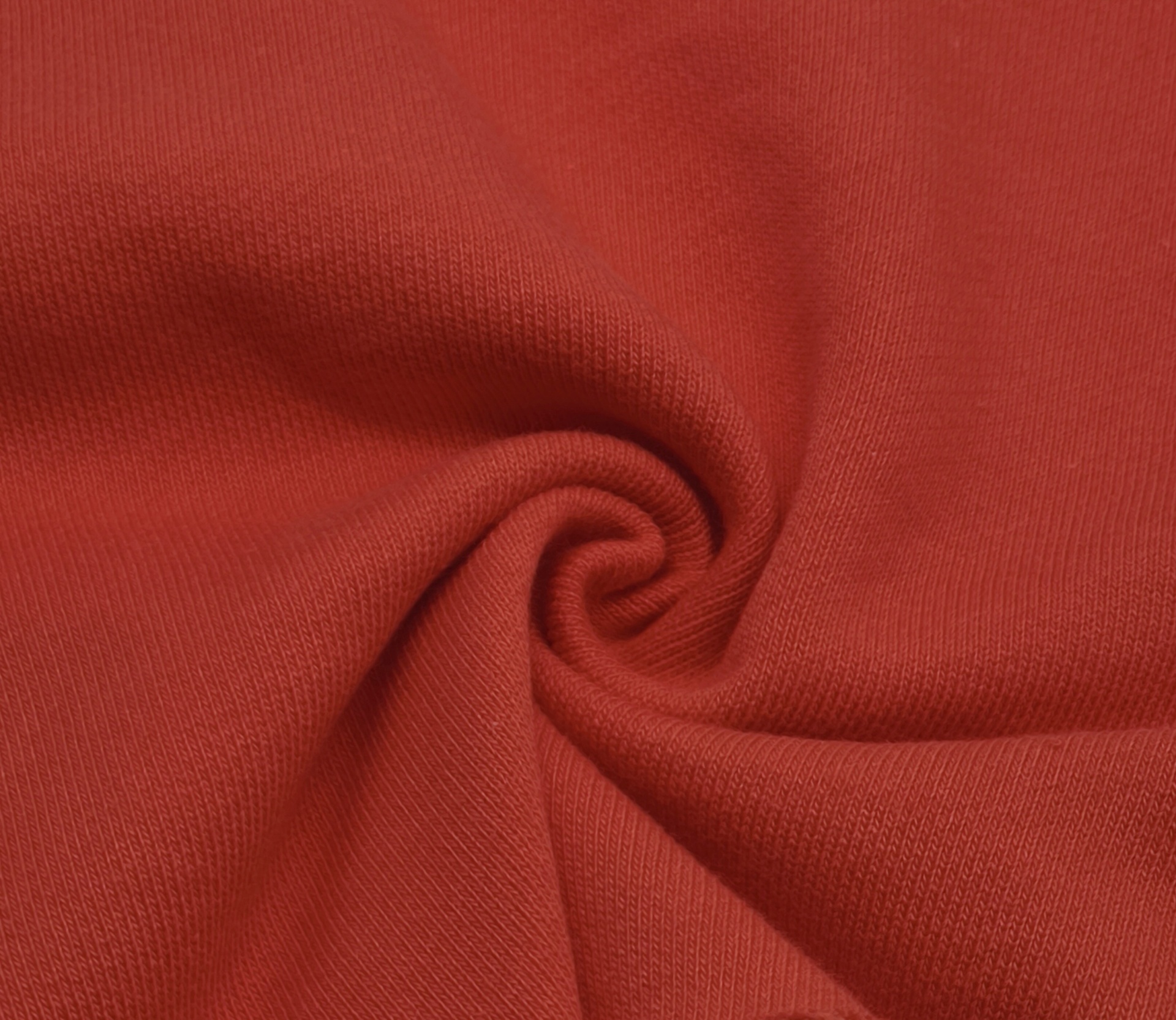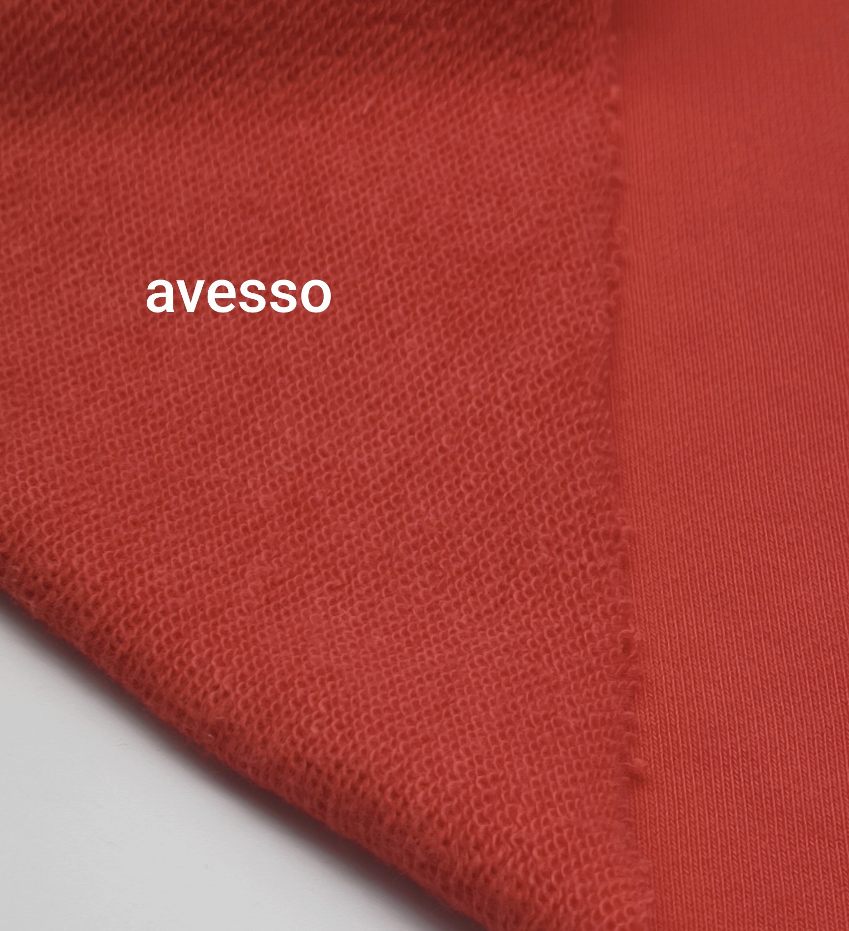 Malha sem carda em tom vermelho, macia, maleável, bom caimento, fresca