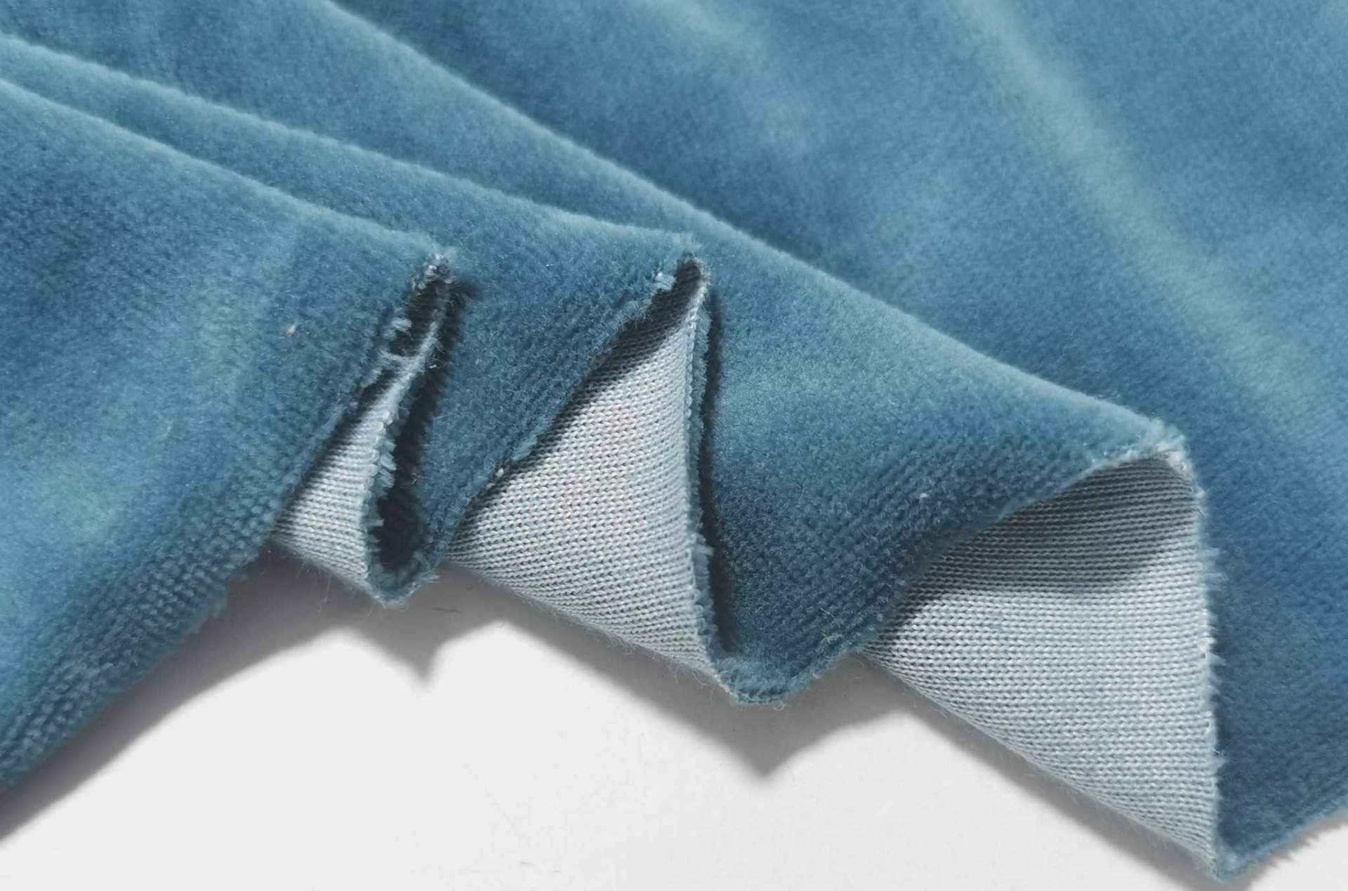 Malha bastante confortável, toque macio, maleável, alguma elasticidade mecânica proveniente da malha