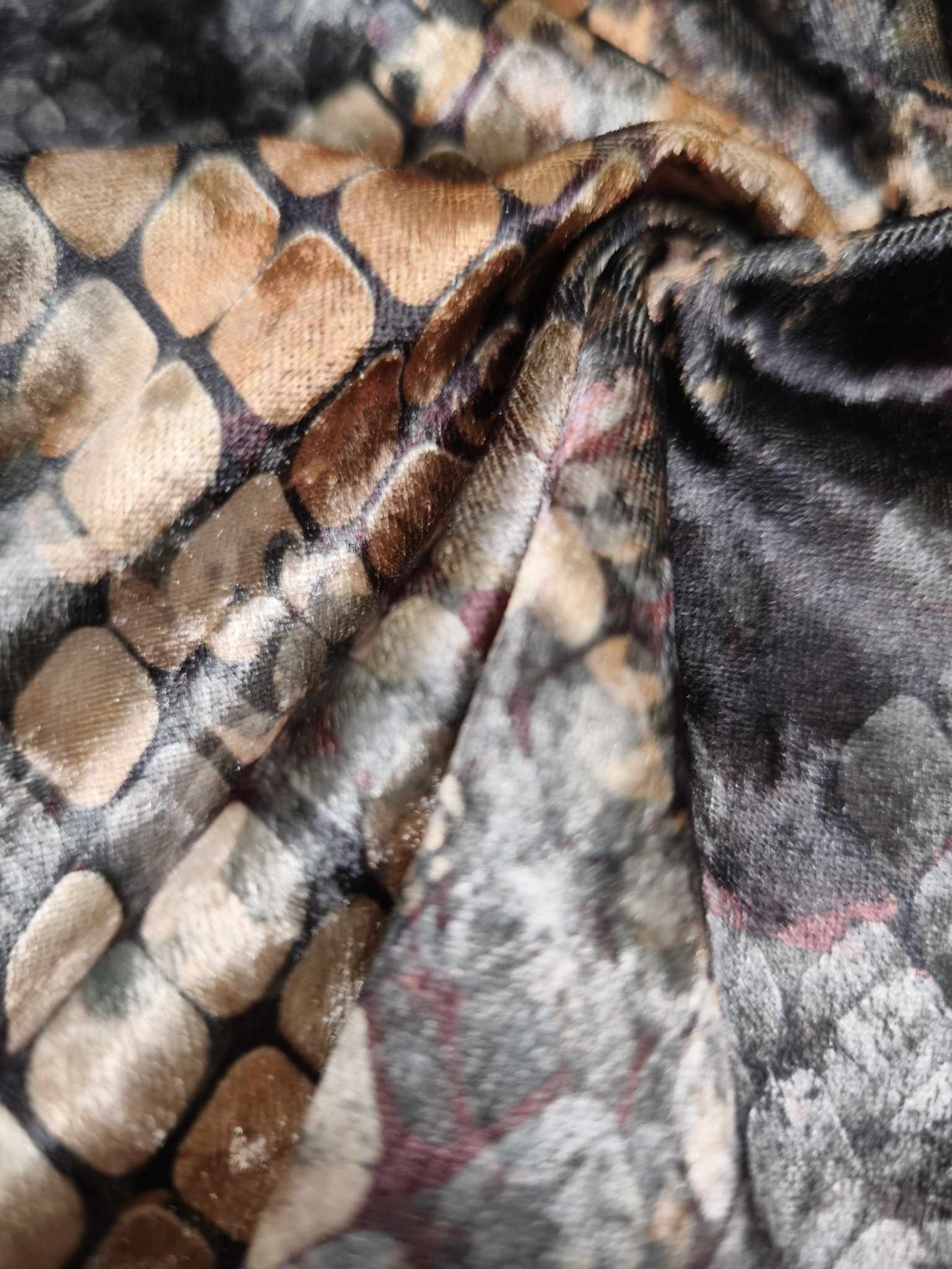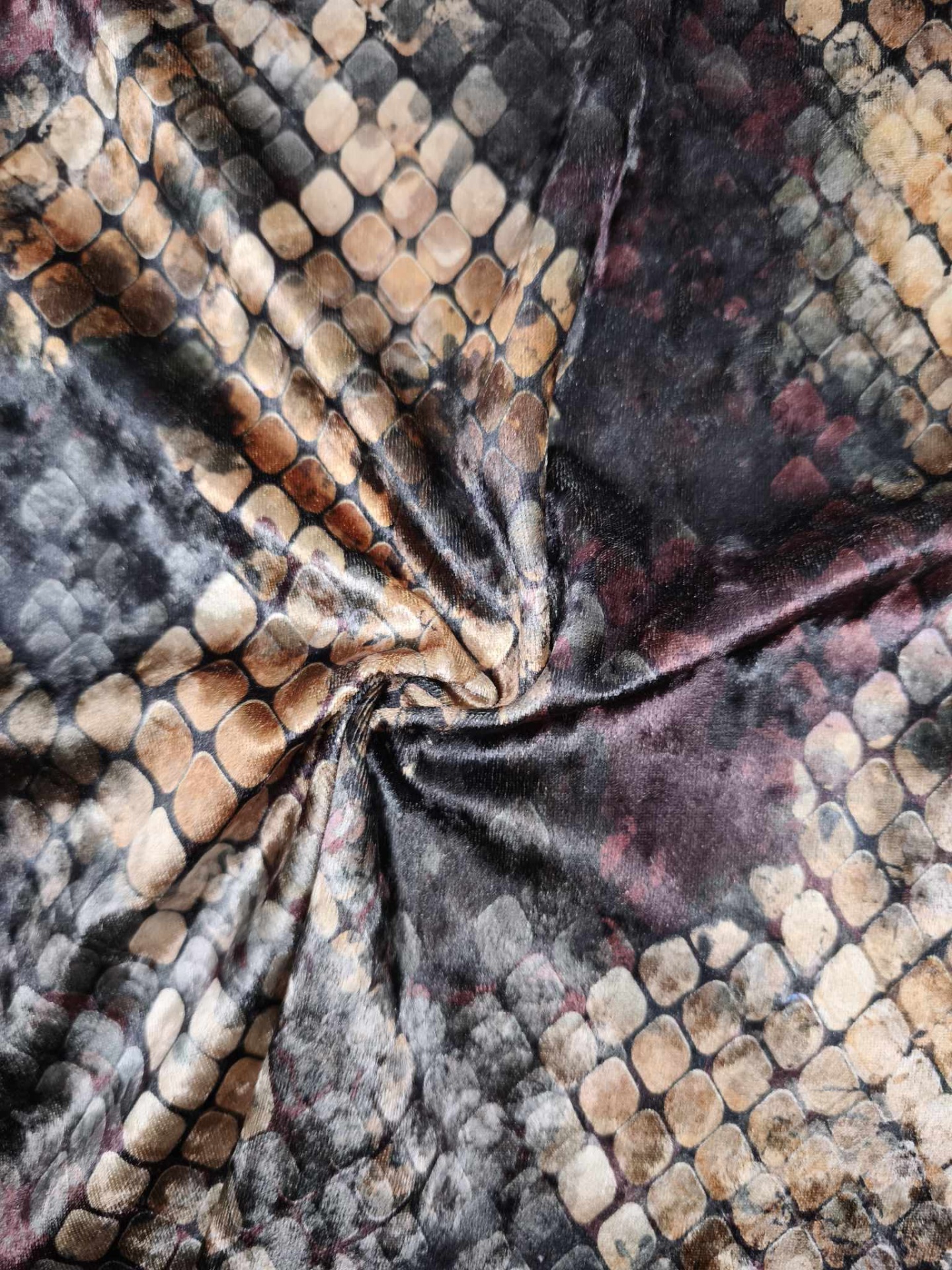 Malha de veludo, pêlo raso, nos tons preto, bege, bordeaux, verde, cinza, dourado, bordô